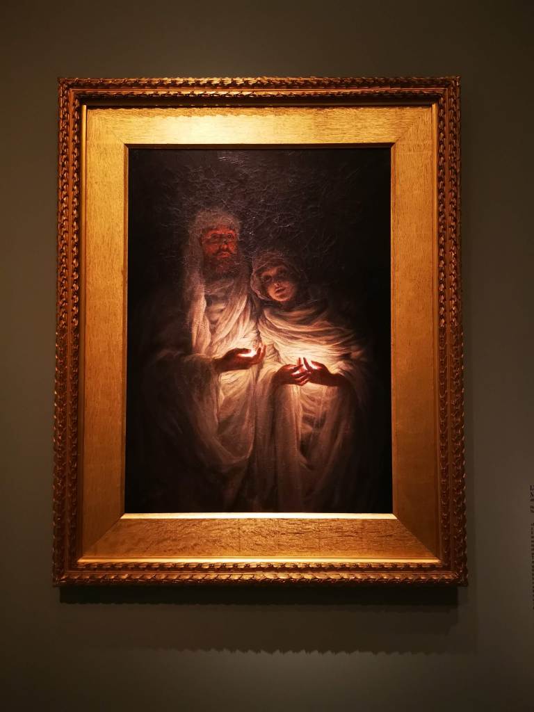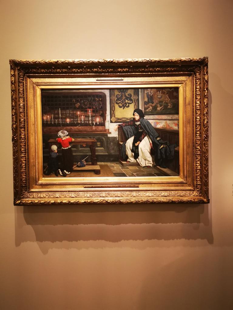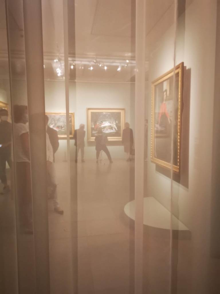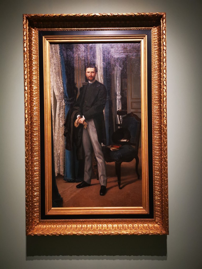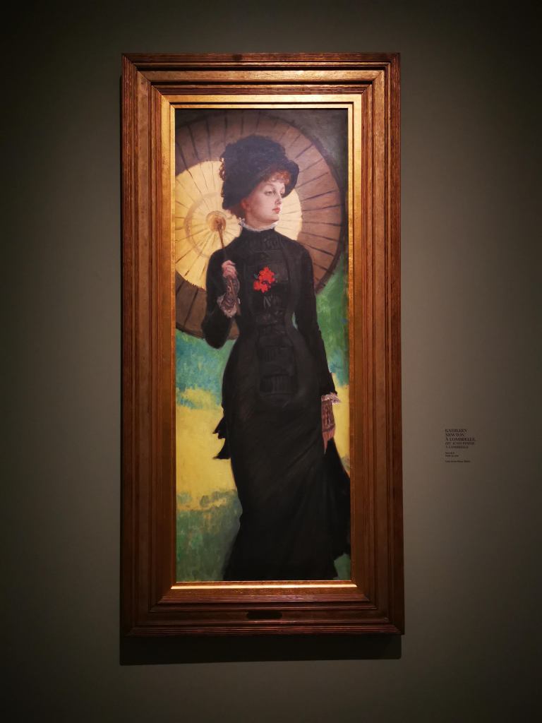 Je suis un peu sur courant alternatif concernant ce musée. J’adore le bâtiment, remarquablement rénové et aménagé pour accueillir le fleuron de l’art occidental de la seconde moitié du XIXe siècle à l’avant Première guerre mondiale. L’espace dédié aux collections permanentes est un régal pour les yeux, remarquablement mis en scène pour pouvoir apprécier avec le recul et l’espace nécessaire chaque chef d’œuvre des lieux. Par contre, les expositions temporaires sont hélas confinées dans une aile du musée, étroite et basse de plafond, qui me fait toujours sentir mal à l’aise, collée aux autres visiteurs, et n’offrant pas assez de recul sur l’ensemble de l’accrochage. C’est pour cela que je l’ai beaucoup boudé ces dernières années ; mon sentiment s’était confirmé quand je m’étais rendue en octobre dernier à l’exposition Degas à Paris. Elle était superbe, et cela, je n’en aurait jamais douté. Mais il y avait tant de monde et si peu d’espace pour apprécier les œuvres ! Et je vous parle d’un temps où l’on pouvait se coller sans problème à son voisin… C’est sans doute grâce à la mise en place des gestes barrières que j’ai décidé de me rendre à l’exposition James Tissot, l’ambigu moderne, et ainsi vivre cette visite dans des conditions bien plus agréables.