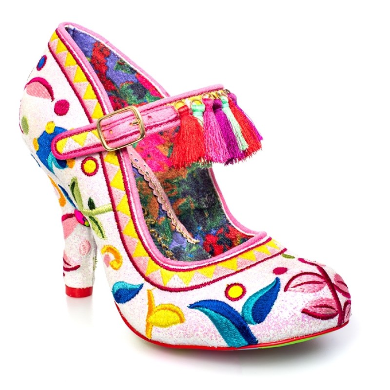 Il parait que les femmes ADORENT les chaussures. Je suis un peu un cas à part car oui, j’aime bien ça, mais je suis plutôt sage niveau prix. Par contre, si je ne manque pas d’avoir les indispensable basiques dans ma garde-robe, il m’arrive parfois de craquer pour des modèles un peu plus fous, que je ne porte qu’en certaines occasions, mais qui mettent un peu de peps à mes tenues. Et il y a une marque anglaise qui fait cela très bien : Irregular Choice. Il faut avoir, au moins une fois dans sa vie, franchi l’entrée de la boutique située à Carnaby Street, à Londres. Le décor, les vendeuses (et vendeurs) : tout est assorti aux créations complètement foldingues de cette marque de chaussures. Et cela permet de se rendre compte que pour certains modèles, il faut avoir un peu d’entraînement en matière de talons hauts, car les leurs sont parfois gigantesques… et pas forcément pratiques. J’ai déjà trois paires Irregular Choice, dont de sublimes bottines rouges inspirées de Ziggy Stardust. Elles sont démentes (et sans talon !). C’est en regardant les soldes sur le site de la marque que j’ai remarqué ces babies à talons, tout à fait dans mon style bohème / vintage / brodé. Le modèle Ekaterina reste quand même assez sobre par rapport à d’autres qui me font envie depuis longtemps (dont celles-ci, celles-ci ou encore celles-ci), et je me demande si je ne craquerai pas. En tout cas, je les place sur ma liste de BazarEnvies. Allez faire un tour sur le site pour voir les autres modèles. Même sans acheter, on en prend plein les yeux !
